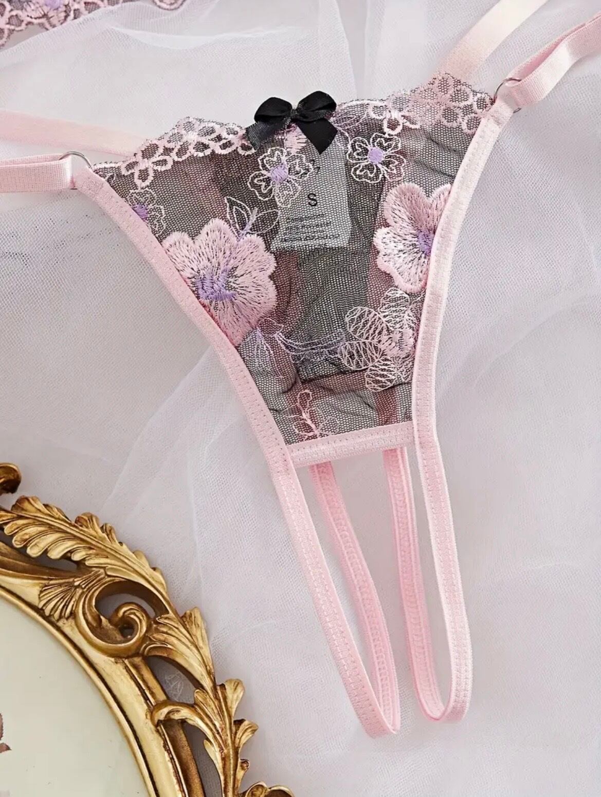 Floral Enchantment / ハーフオープンブラ&オープンクロッチショーツ セット(Pink)